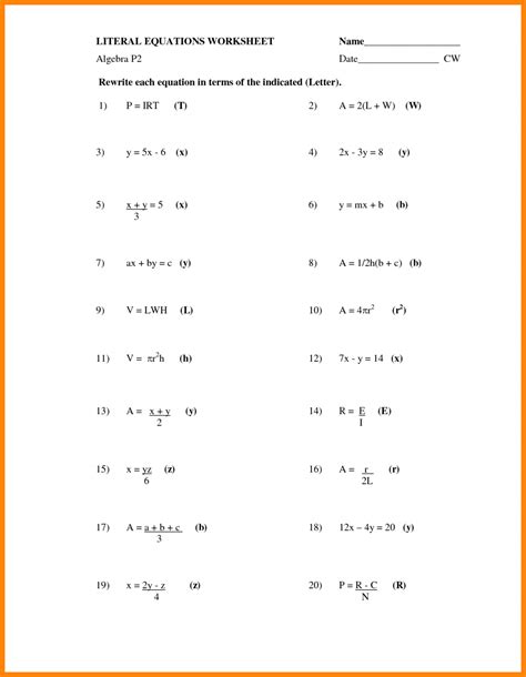 Algebra Formula Worksheet. Answers in the form x =. Here is our selection of basic algebra sheets to try.